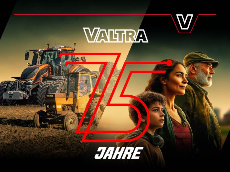 Valtra wird 75 Jahre alt und Sie können mitfeiern. Schlagen Sie jetzt zu und holen Sie sich die Valtra Jubiläumsfinanzierung ab 0,00 % Zinsen beim Kauf von Valtra Neumaschinen der Serien A, G, N, S, T und Q. Aktion gültig bis auf Widerruf.